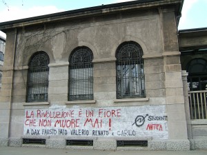 Gli studenti di Citta`studi non sono certo rimasti a guardare e insieme ad altri studenti provenienti da altri poli universitari hanno non solo restaurato un murales che rappresenta anche la storia degli ultimi due anni di mobiltazione e di presa di coscienza da parte degli studenti universitari, ma anche ripulito il muro del Politecnico su cui capmeggiava la scritta “Citta`studi e` fascista”. Su quello stesso muro e` stata dedicata una frase per ricordare Fausto, Jaio, Valerio, Renato, Carlo e Dax. Tutti ragazzi, morti troppo presto per mano di fascisti o polizia.